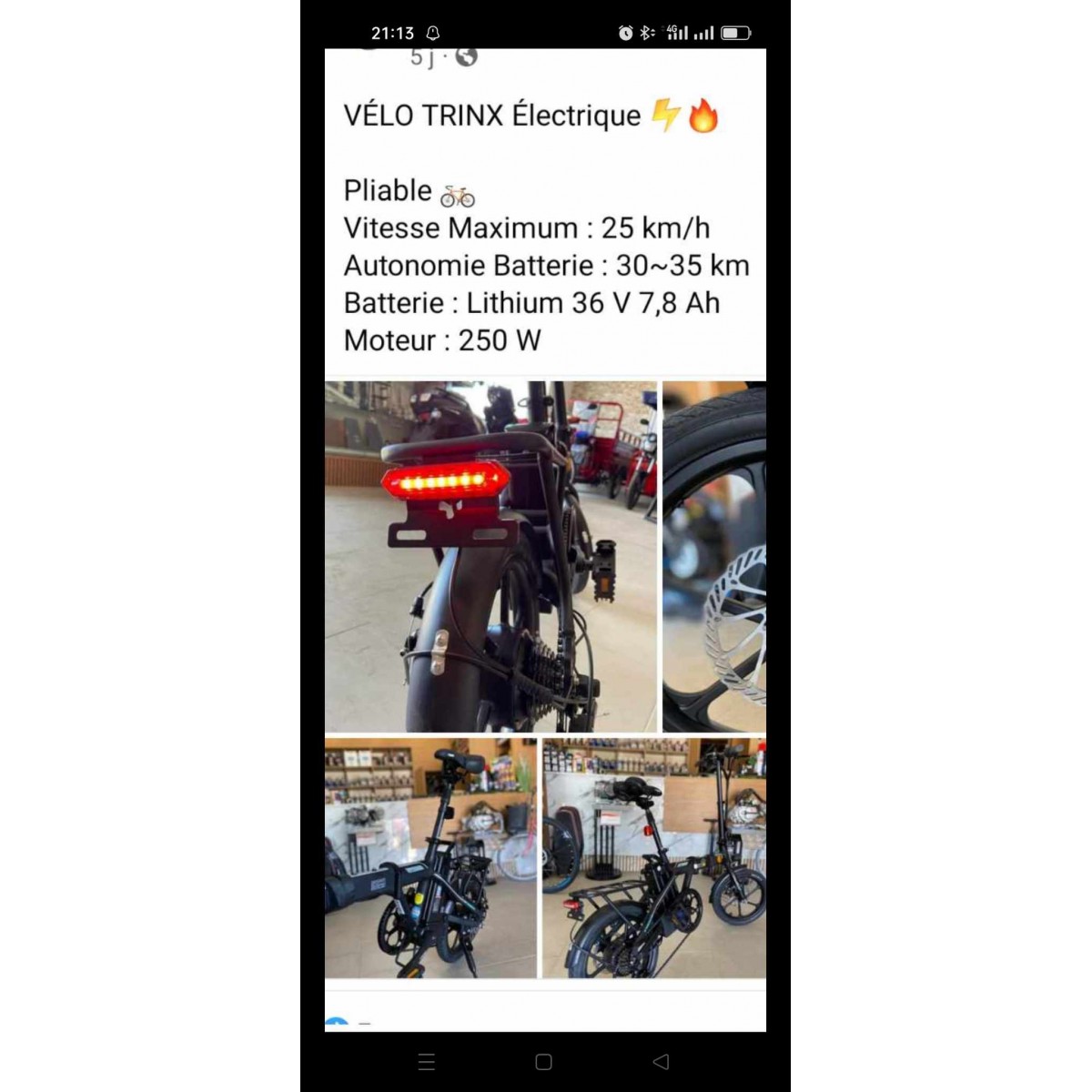 Velo Electrique Pliable Trinx Vitesse Maximum : 25 km/h Autonomie Batterie : 30-35 km Batterie : Lithium 36v 7.8 ah Moteur : 250 W
